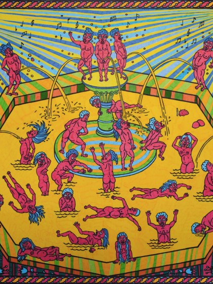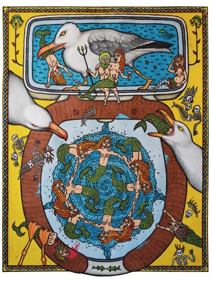 2014. Лубок, фломастеры. Тираж 4/10, уникальная расцветка. 60х66 см.
