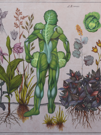 2016. Холст, масло, грифель, spray painting. 50,5 х 55 см.